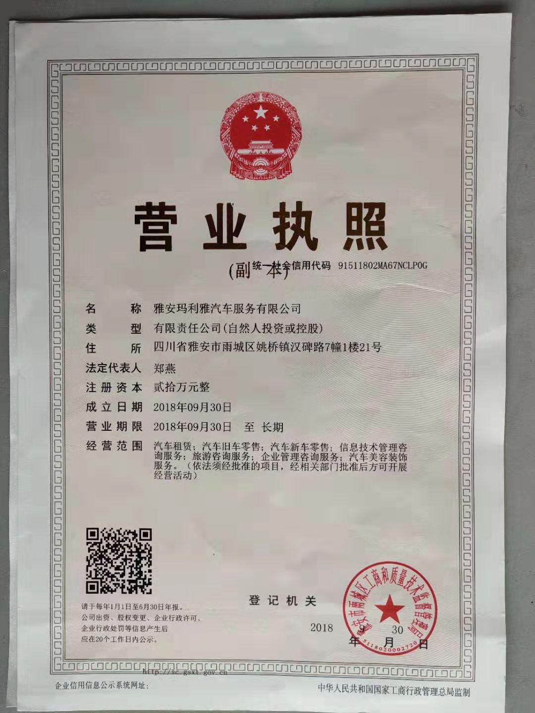 雅安市瑪雅汽車(chē)服務(wù)有限公司